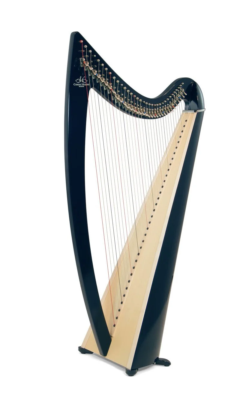 Following the success of their ultra-light DHC model electric harp, Camac utilized state of the art techniques to create an electroacoustic carbon fiber harp specifically designed for traveling. The Camac Ulysses has a soundboard made from the finest spruce giving this portable harp an impressive warm, resonant tone. The body is made of carbon fiber which drastically reduces the weight of the instrument. The addition of an integrated Ischell amplification system will provide optimal projection in any venue while preserving the look and feel of a traditional Celtic harp.